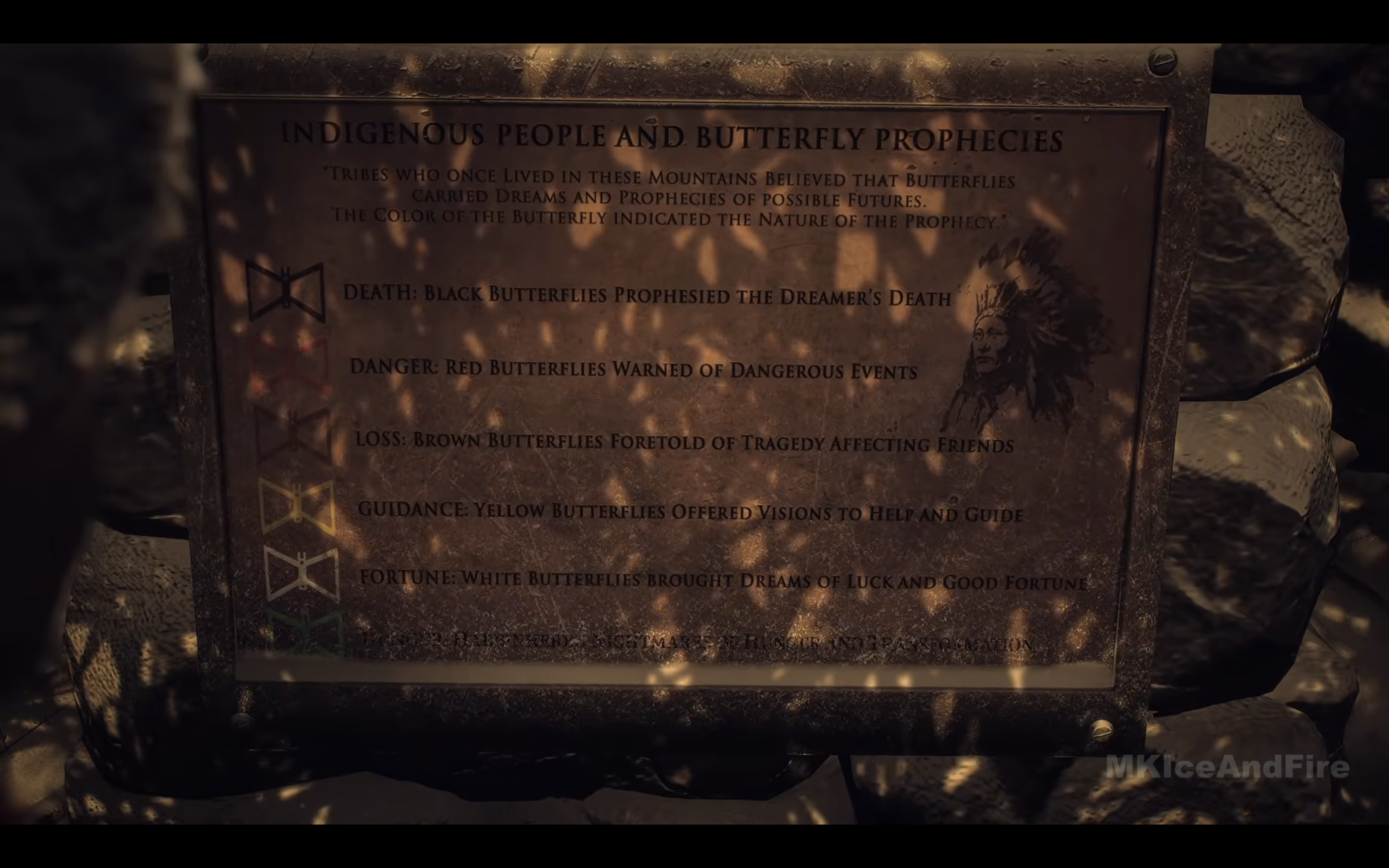 with butterflies carved into it. You notice a sign next to the totem with